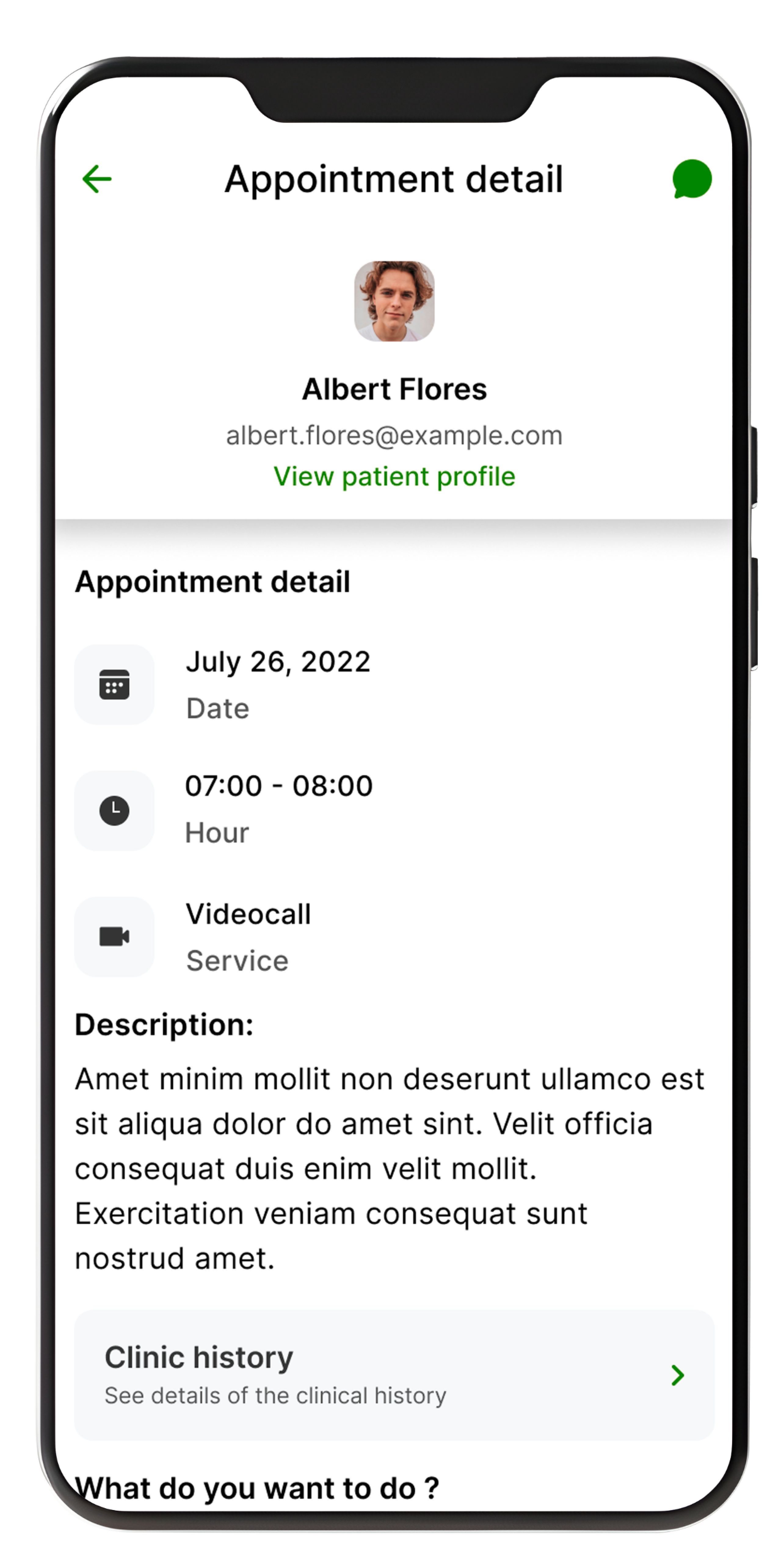 Set all operating hours, set your Referral practices, manage physical and virtual consultations, run your finances electronically (payments, receipts, escrows, etc.), work with digital Clinic Histories only (no need to store physical paperwork), prescribe medications directly through the app, automate your follow-ups, and more.